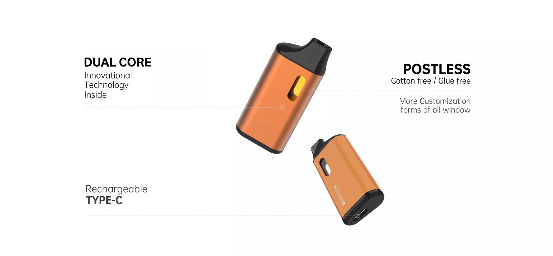 - Pure taste with postless design, no metal, no cotton, no glue;